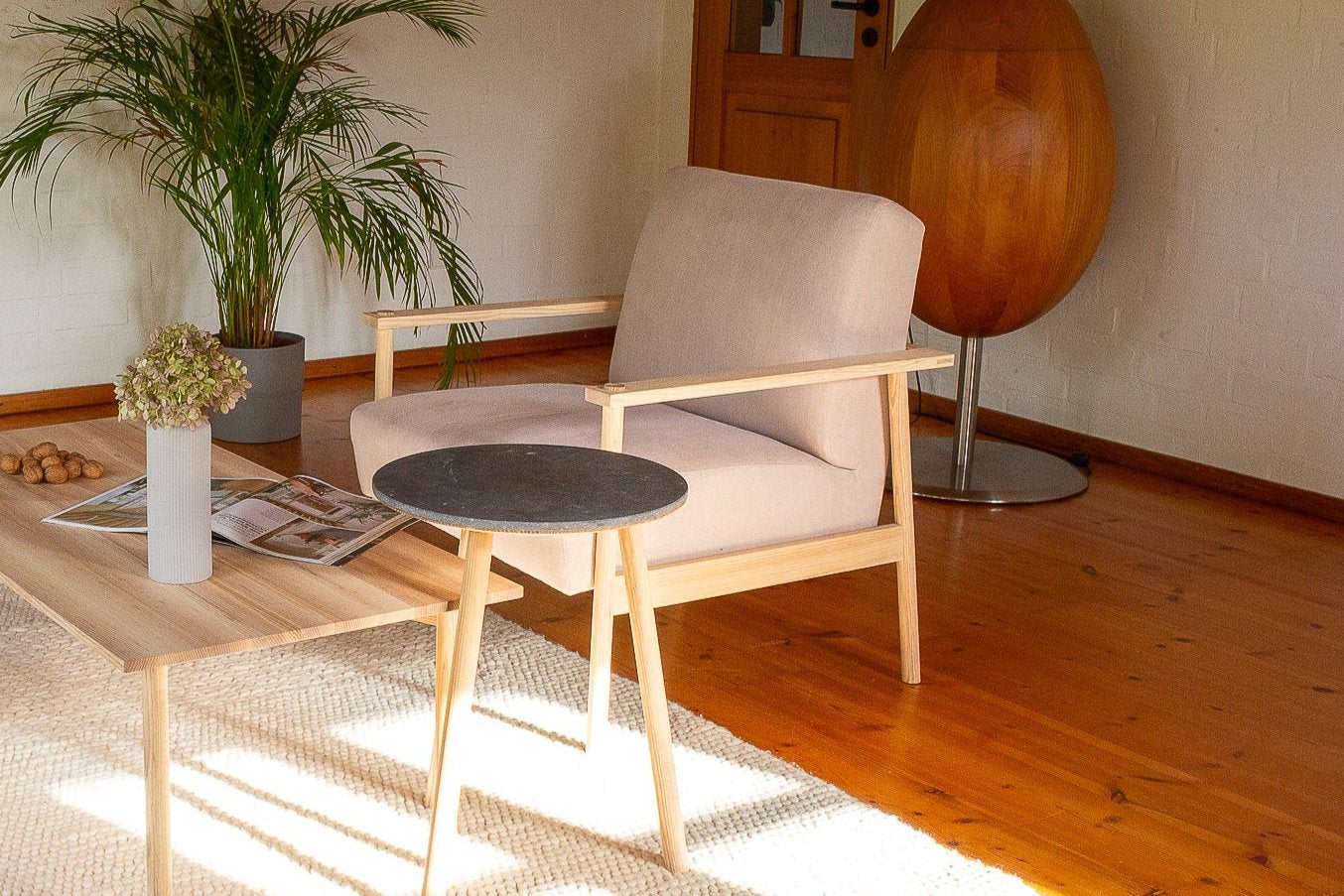 Unser AUEN Beistelltisch ist die perfekte Ergänzung zu Ihrem wohlfühl-Bereich. Eine Mulde in der Platte hilft Ihrer Ordnung und zeigt spielerisch was mit dem Material Holz alles möglich ist. Mit seiner hellen Ästhetik und der formalen Einfachheit könnte man diesen Tisch fast nach Skandinavien verordnen, doch wissen wir, dass sein Herz am Niederrhein hängt.