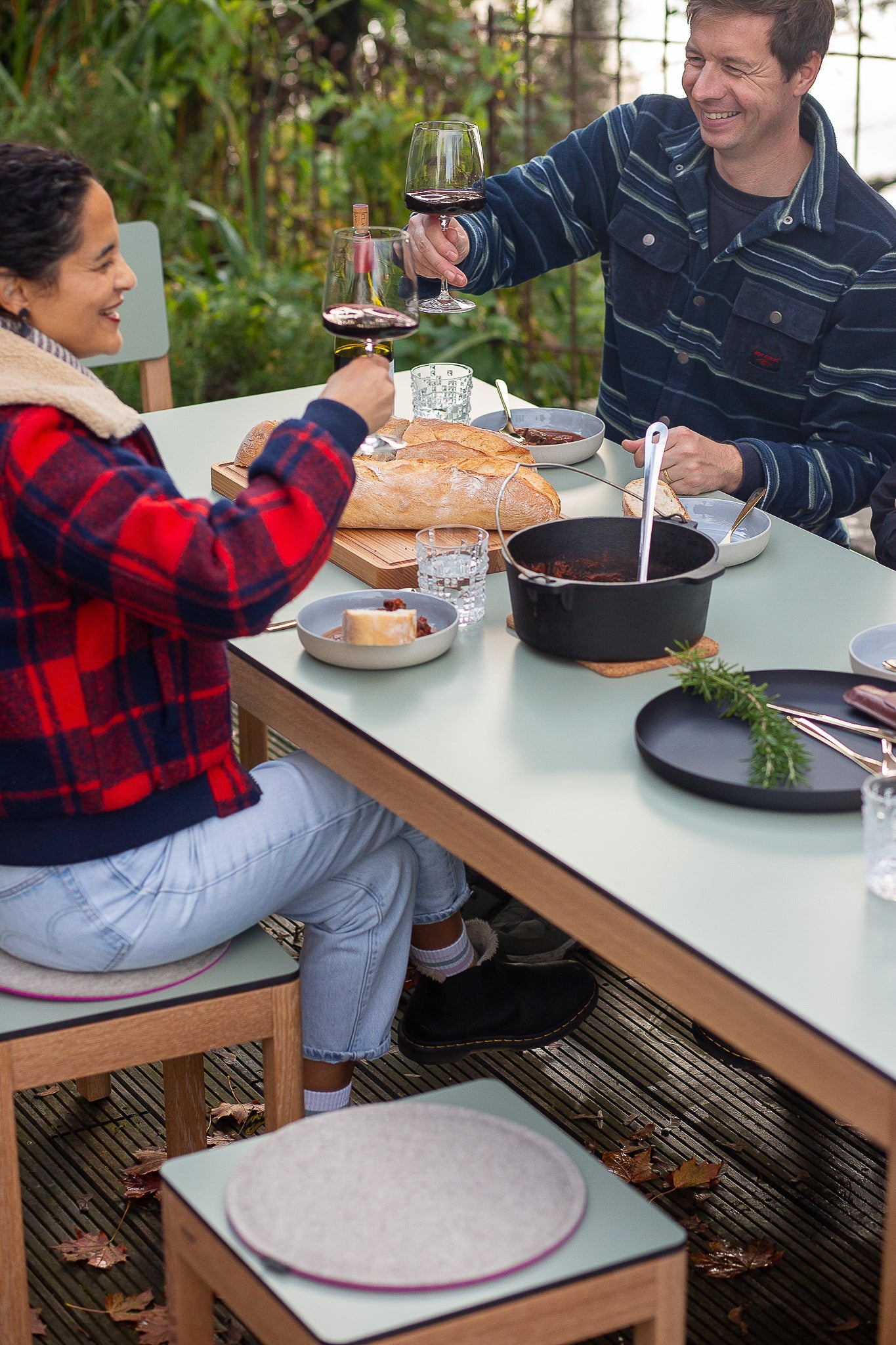Die Outdoor Möbel der GRÄS Kollektion sind auf ihr wesentlichstes reduziert. Vier miteinander verbundene Beine und eine Oberseite - mehr braucht es nicht um hier gesellige Momente zu genießen. Mit ihrer soliden Bauweise sind sie außerdem für den unbeschwerten Einsatz im Freien konzipiert.