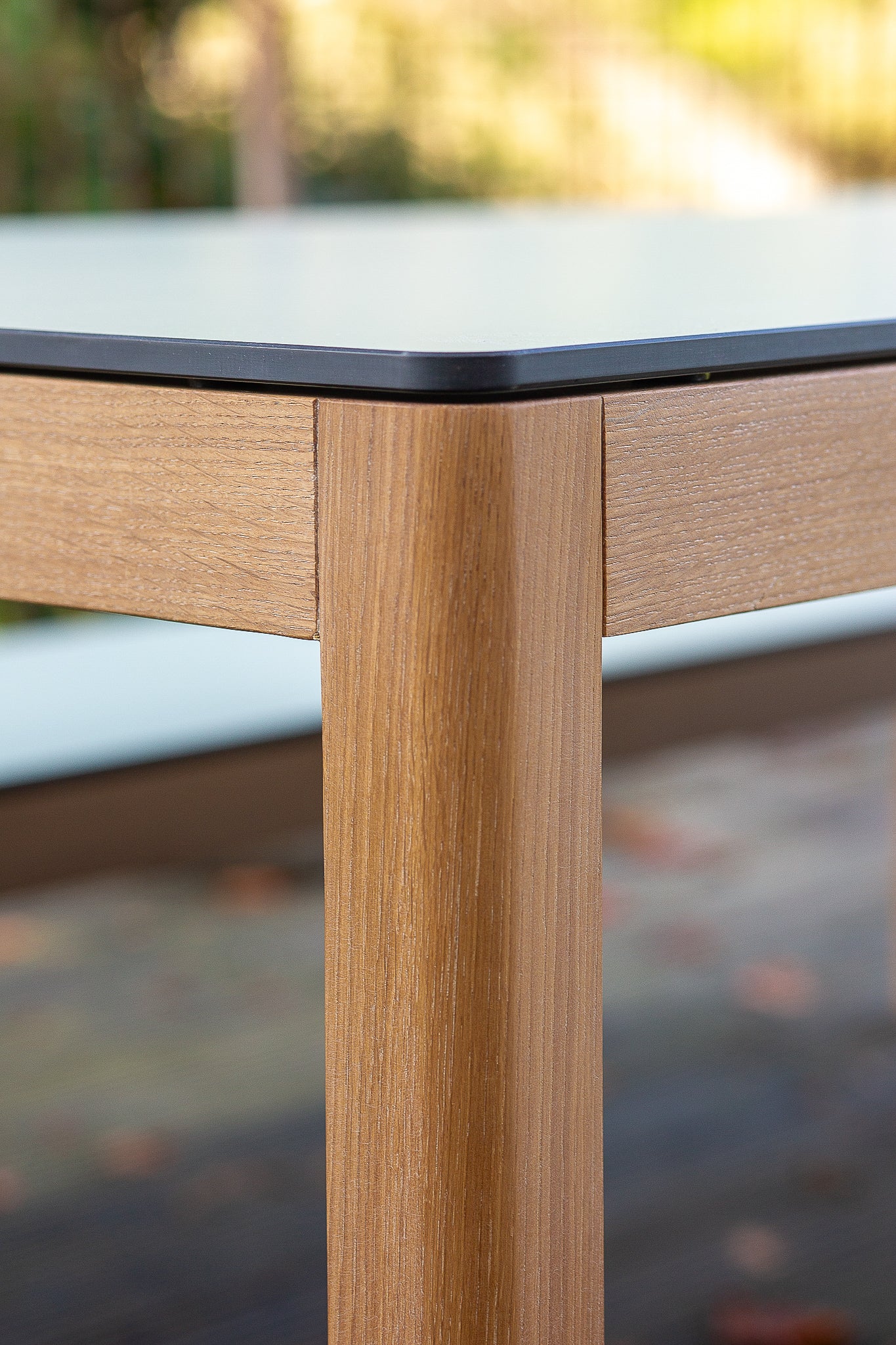 Darüber hinaus enthält Eichenholz natürliche Gerbsäure. Diese kann bei der Verwendung im Freien aus dem Holz austreten und unerwünschte Flecken auf dem Untergrund verursachen. Dieser Prozess endet nach ca. einer Saison mit Bewitterung. Wir empfehlen Ihnen die Outdoormöbel in der ersten Zeit bei Regen auf einem Untergrund aufzustellen der unempfindlich gegen Flecken ist.